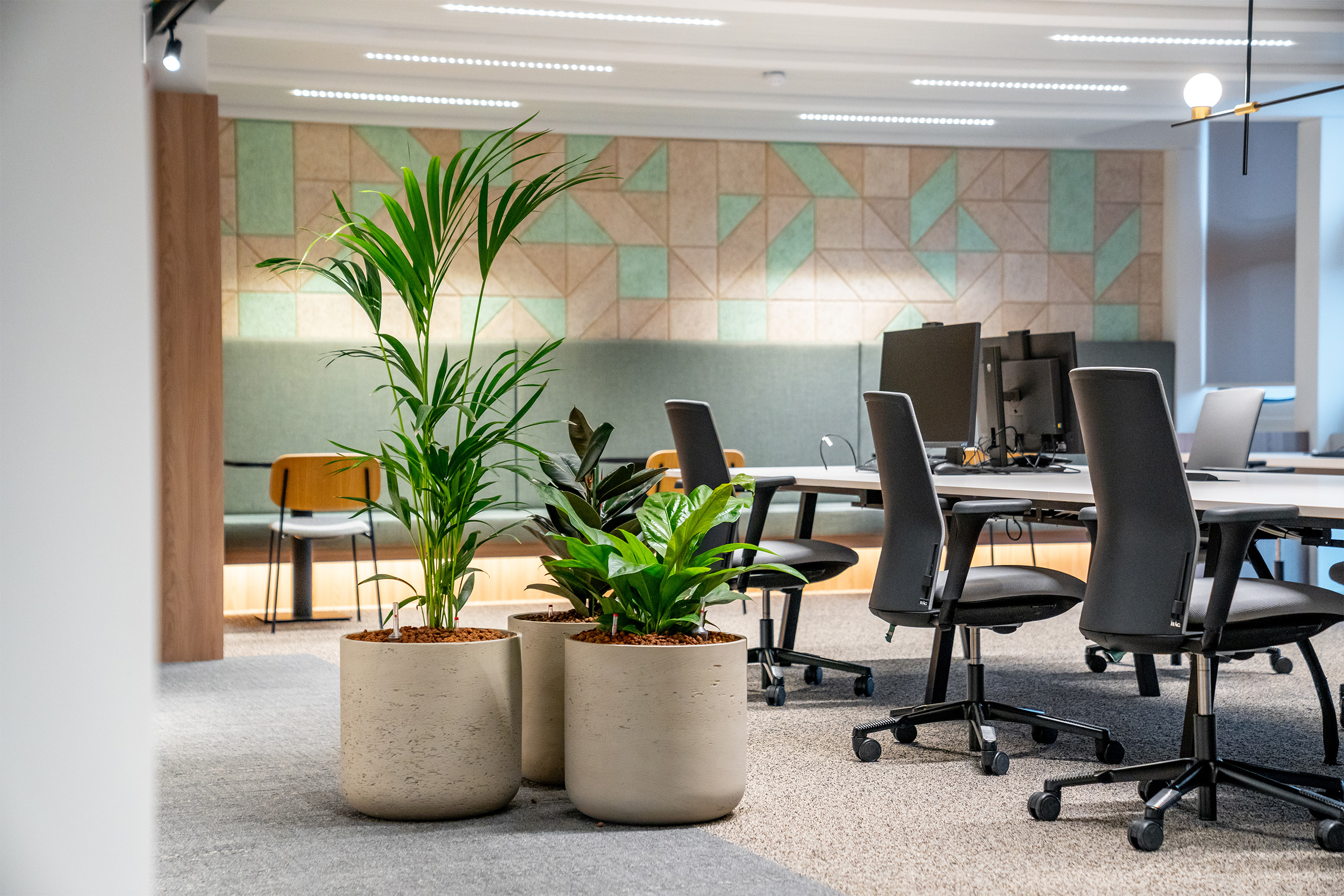 In een open kantoorruimte kan het soms druk en lawaaierig zijn. Door strategisch planten te plaatsen in werk- en vergaderzones, ontstaat er een natuurlijke barrière die geluidsoverlast vermindert en voor meer rust zorgt.